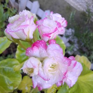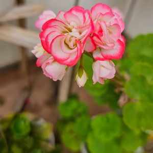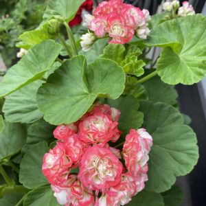 ゼラニウム エンゼルブーケ💐 八重のフリル咲き、しろに濃いピンクの縁取りが入る美人さんです! うちの辺りだと冬も地植えでいけます。