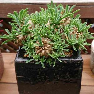 ユーフォルビア 蛾眉山の親株から離した子株も葉を落とすことなく元気ですよ〜(^▽^)/❤️✨✨ 雨がパラパラ降ってきた。
