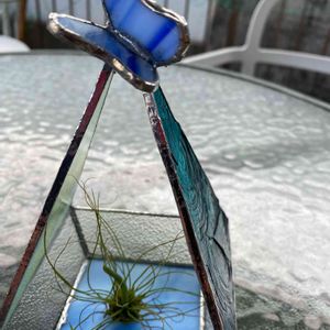 午後から作ったステンドグラス。 エアープランツのお家です。 ご一緒した方との撮影会❣️ 色が違って蝶🦋の開き方も少し違って それぞれ良いなぁ〜と楽しく出来ました。