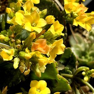 春の陽射しをうけて咲いています💛 カランコエベニベンケイ💛 黄色い花なのに、ベニ(^ ^) 菜の花に似たჯ ιı र ιı花です(ღ*ˇ ˇ*)。o💛