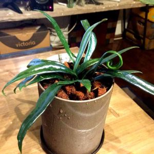 コバルトシダ もしくはミクロソリウムステリー 板付常湿より密閉多湿のほうが、我が家では調子が良い。 数年前にホームセンターにて投げ売り7号鉢1000円。 後になってまぁまぁレアな植物だと知った。
