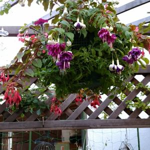 これが、フクシア/ディープパープルを強剪定したあとのビッグ・バスケットの姿です 赤いフクシアも、もっと切ったらと言われましたが、それはしばし勘弁を、ということで残っています 切り戻したペチュニアがポツポツと咲き始めました もう零時近くになりました 昨日も座椅子で意識を落としましたので、今日はこの辺で失礼します ほかにも沢山写真を取ったのですが、没です