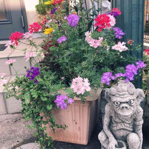 夏バナ咲き乱れる〜💐 ガーゴイル君のツボにも お水をあげました💦