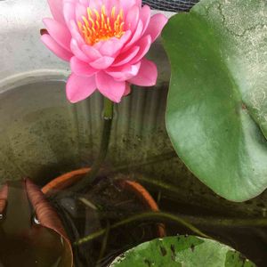 睡蓮が咲き始めました🤗 メダカさんたちも顔を覗かしてくれました。