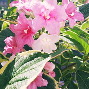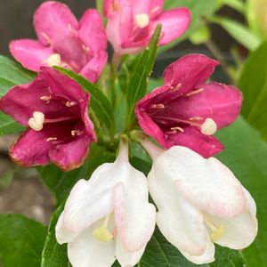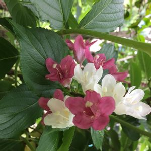 ❇️❇️❇️❇️❇️❇️❇️❇️❇️❇️❇️ 【ハコネウツギ】🌼 ◇スイカズラ科 ◇耐寒性、耐暑性ともに強い🐛病虫害も少なく大気汚染に強い育て易い植物です🌱 🌼花期は5~6月頃ですが·····今の時期も咲いていました、花色が白から淡紅そして紅色に変わり三色の花🌼を同時に楽しめます☆👍 📕 ウツギの花言葉は「古風」「風情」「秘密」