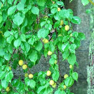 ここはいつもの神戸湊川神社⛩️ 楠木正成を祀っているだけに クスノキが茂っています。 梅雨の神戸はザーザー降り〜☔️ 写真をよく見ると雨☔️の線が見えます。 1,2枚目は見事に育ったウメの実 宮司さんか巫女さんが梅酒作るかな〜