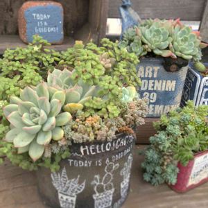 かなりお久しぶりです! かわいい(о´∀`о) なんてかわいい色になってきたの💜💗💚 小さいタイプの子達の 寄せ植えというかぶっ込み的な😆❤️ どれがどれだかわからないので 名前つけてる場所は適当です。 種類はあってるはず。😅