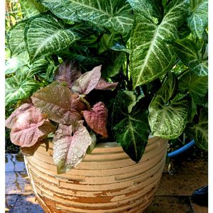 ウォーターコインが水瓶にいっぱいになっていて……… 水面が見えない バケツに一時お預かり それにしても繁殖力旺盛 (お値段高めで少しだけお迎えしたのに)ウォーターコインなんて名前通りの可愛らしい葉っぱさん 百均ショップで購入したピンクのシンゴニューム 3年以上経つけど元気です グリーンとの寄植えはお気に入り😉