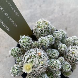 うちの多肉棚には珍しい、トゲトゲ。 銀手鞠に花が咲きました😊 グリーンルームさん🏷 マミラリア属ヴェチュラフラジリス🐿 ふるさと納税でいただいた子です🌵