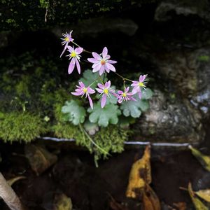 今日のお花 大文字草…ユキノシタ科 苔蒸した断崖に 咲いていました。 10月.英彦山で🤳