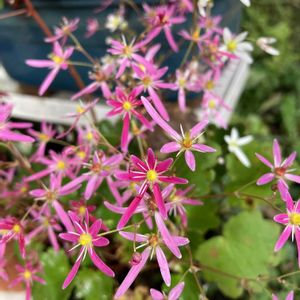 ダイモンジソウです。 自然大好き派😘、兼園芸🧑🌾もやっています派です。 我が家のこの子がようやく猛暑の眠りから覚めて咲きました。株が毎年小さくなっている感じです。 今年も植え替えてみます😂。 株が弱っている原因が不明です。 単に手入れが悪いだけかも?