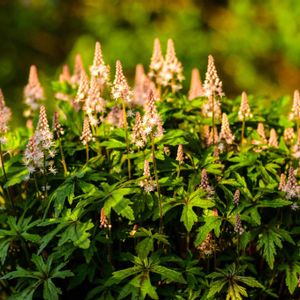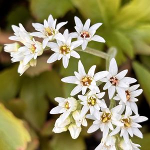 花が開花し始めると〰︎ 桃色のつぼみが③ 白一色になる🎶 🌿ヤツデに似た掌状の葉です④ 岩八手(いわやつで) 別名 丹頂草(たんちょうそう) ユキノシタ科