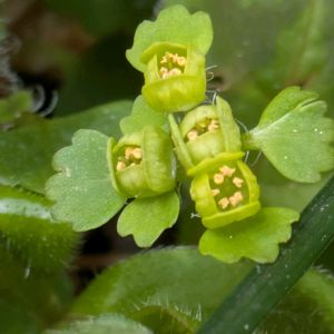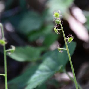 サンインネコノメ 少し北部の山あいで出会うネコノメは、当地のものとは全く違っていた‼️ホクリクネコノメの変種だヽ(^o^)丿 苞は、一見するとボタンネコノメの色合いに近い🟡🟢 けれども開き始めの萼から2個の花柱が飛び出していて、雄蕊の花糸も直立した萼片よりも長いのは特徴的で、萼から飛び出した葯は暗赤褐色🟤 ホクリクネコノメは萼片の色が黄色いし、ボタンネコノメは雄しべ雌しべとも短いよね(,,>᎑<,,) 萼片も茎も淡い紅色から茶褐色で、葉は対生していて毛はないみたい(๑・ิ◡・ิ๑)
