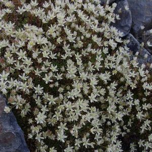 シコタンソウ Saxifraga bronchialis L. subsp. funstonii (Small) Hultén var. rebunshirensis (Engl. et Irmsch.) H.Hara 北海道、本州の中部以北に分布し、高山の岩礫地、砂礫地、岩上に生育する。 花期は7〜8月