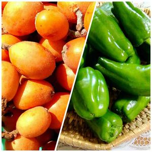 雨☔で、 傷みが出て─ 今日が最終リミットのビワを⤴️ いつも気に掛けてくれるお友達に届けたら💝 反対に、ピーマンいただきました(〃⌒ー⌒〃)ゞ💚 わらしべ長者になりました(*´σー`)エヘヘ