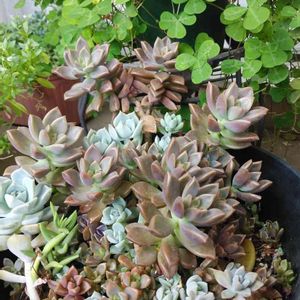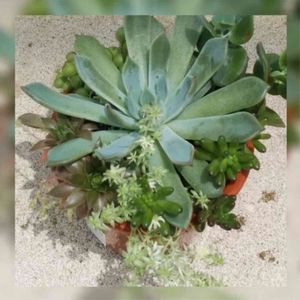 多肉の寄せ植え 一ヶ月前に✂した シャビアナさんと 可愛い💞多肉さん レディジア プロリフェア 断捨離かねて☕に 寄せてみました‥🎵