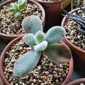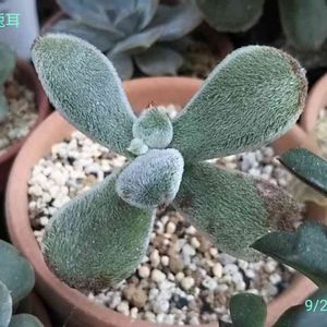 白兎耳(エケベリア) 植え替えと言うよりちょっと土を足しました。やっと根っこが安定したみたい。来た時は根っこなかったもんな…💧もけもけ感がたまらない!
