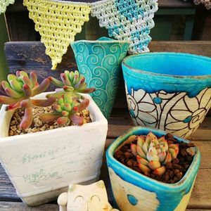 陶炎祭🔥行ってきました〜✨ a.t.さんのブースで、多肉用&お花用の鉢を大人買い✨ 写真は一部、以前購入したものも含まれます😌 素敵すぎる👉外に置くのはもったいない👉家の中でじっくり鑑賞したい😍👉日当たりそんなになくても🆗なハオルチア に植え替えて、リビングに置く予定です😆