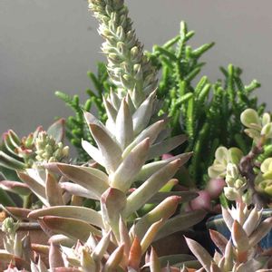 【イワレンゲ属・オロスタキス属 白雪爪蓮華(白肌爪蓮華?)】 Orostachys sp こちらはフォロワーさんから いただいた、白雪爪蓮華👸 爪蓮華の白肌タイプ まるでネイルを施した様な 色合いが可愛らしいですね💅 ミヤビサン、アリガトウ (灬º‿º灬)♡