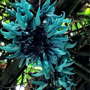 県立植物園温室の出口には、ヒスイカズラの花が、たくさん!綺麗な色(*゚▽゚*)💕昨日のピンクの花より、こちらこそ宝石💎✨でしょ! コウモリ🦇さんが、蜜をなめるそう∑(゚Д゚)蜜が好きなのは、ハチ🐝さんばかりじゃないもんね(^_^)