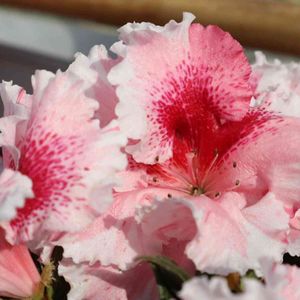 これはアザレアで、「ステラ・マリス」という品種だったと思います。白に濃いピンクの花で、これも優しい印象ですね。
