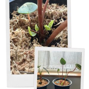 ピレア・ペペロミオイデス 園芸店の片すみに ひっそり ...... 🌱⋆。 あれから 1ヶ月 𖤣𖥧𖥣𖡡𖥧𖤣🌱 可愛い芽が出てきました ⤴︎⤴︎⤴︎ やっほー