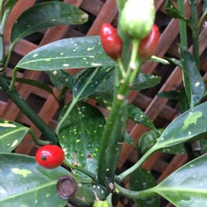 アオキの実が🌿🌳🎶 真っ赤に🍒🎵😊 なってきました😃💕 花言葉 若く美しく 永遠の愛 変わらぬ愛 初志貫徹