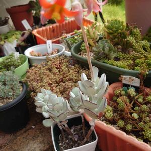 雨続きで大きく育ってたラウリンゼがジュレってた😱💦 他の子も徒長したり、わさわさ〜になったりいろいろ良くも悪くも大変です笑笑 画像は🏷⸒⸒9日は黒法師の日に参加の黒法師たち! 1番上の寄せ植えは左下を✂️した元の子です😊 そして右下は突然成長点から子吹したその後!黒法師らしくなってきたよね😆