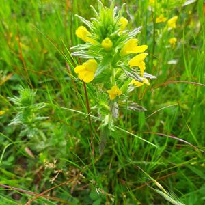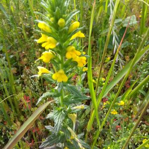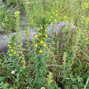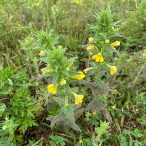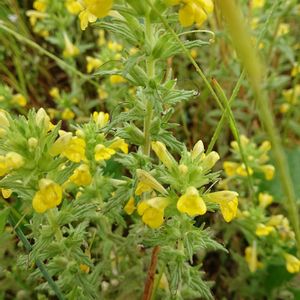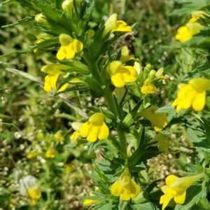 4/27 (木) ☀️ 💛🌿セイヨウヒキヨモギ🌿💛 ※ハマウツボ科 ※ セイヨウヒキヨモギ属 学名❀✿Parentucellia viscosa 名前❀✿セイヨウヒキヨモギ (西洋引蓬) 、ゴマクサモドキ (胡麻草擬) yellow bartsia、yellow glandweed 原産地🔷ヨーロッパ南西部 ♣️堤防や道ばたなどでみられる高さ50~70cmの一年草。半寄生植物。1973年に千葉県船橋市で確認され、関東地方以西に帰化している。♣️ 4/26付📸📱💛🌿散歩道〜道端で💛🌿