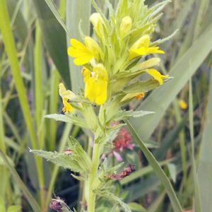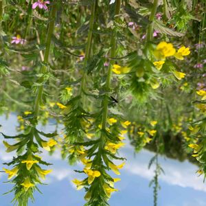 え!なになに? メマツヨイグサ? 花が違う! 葉が違う! なんだろう🤔 「セイヨウヒキヨモギ」ハマウツボ科セイヨウヒキヨモギ属でした! はじめましてです。 黄色い花はかわいいのですが茎はベトベトしだれかの綿毛を纏っています。 光合成もし、他の植物から養分を奪う半寄生植物だそうです。