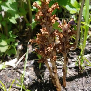 🤎🤍ヤセウツボ🤎🤍 🤎🤍ハマウツボ科の一年草 葉緑素を持たないので主にマメ科の植物に寄生して育ちます。 クローバーやアカツメクサがたくさん咲いてる野原であちこち咲いていました🤎🤍 *外来生物法で要注意外来生物に指定