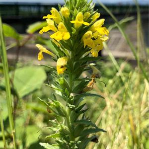 セイヨウヒキヨモギ ………西洋引蓬……… 1973年に千葉県の船橋で確認された 比較的新しい帰化植物です🍀 背丈は20㌢から60㌢位 1.5㌢程の唇形のお花 可愛いです。 茎に少し粘り気がありました。 黄色いお花は 元気が出ます💪 近くの川の土手道で📷