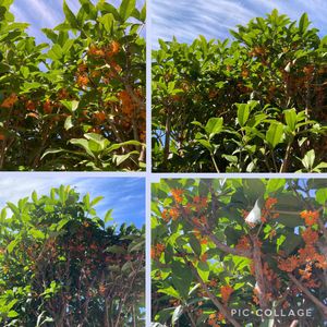 ☆今日のキンモクセイ☆ 綺麗な青空、気持ちいい♪♪♪💕 キンモクセイのお花のやまぶき色が すごく鮮やかに見え、香りも強く なりました。💕 うぅ〜ん、いい匂い〜🙄😆 今日は、角度を変え撮りました。😂