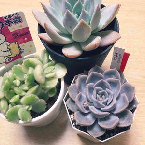 少し前に一時閉店するスーパーの花屋さんで格安になってた多肉たち、状態イイし安すぎて沢山狩ってしまいました。 この箱欲しかったから嬉しい💎💕 右端のはフーケリーかな? お店にあった時点で葉が沢山取れちゃってました。 もう増やさないつもりだったのに••• 本当に置き場所無くなってきた💦