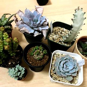 一昨日狩った物🌟 トレーに乗ってない左側の多肉と花木は植木市で、松ぼっくりも同じ公園にて。 トレーごとに違うHCで狩った多肉たち🍖✧*。 植木鉢もいくつか購入しました。 1号ポットの多肉も買ったけど並べるの忘れちゃった。 久々に行った西村ジョイ成合店の多肉コーナーが3倍ぐらいに拡大しててテンション上がった❣❣ レジ横のコーナーだけでも充実していて、そこばっかり見ていて いつも見ない所が多肉置き場だったから今まで気付いてなかったのかも...? エケベリアの品揃えも充実していました✨ ロッティがいっぱいあって、もう持ってるのに3ポット購入😅