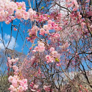 桜の花が、降り注いでくるようで、枝垂れ桜は下から見るのが好きです。