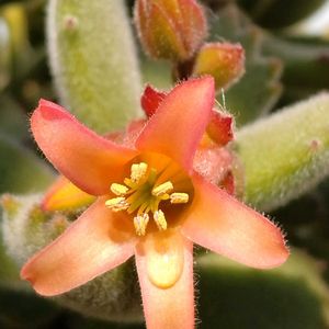 朝は一段と冷え込む様になりました。 朝のベランダの熊の手🤚沢山咲いています 。接近してパチリ📱