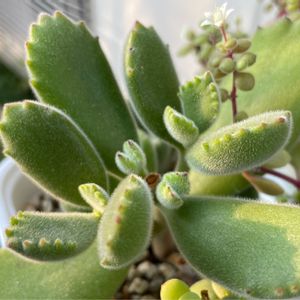 熊童子 秋にカットした下の部分 新しく出てくるおててが可愛すぎて見惚れちゃいます💕 お隣のブロウメアナが沢山花を咲かせてて、私も♪と一輪映り込んでます😊