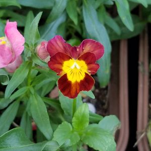 ビオラ 『品種不明』 あらあら?! また今まで見た事ない子が咲きましたよ。 結構インパクトあるなぁ。 こぼれ種で咲いたお花の中で1番目立ってますよ。