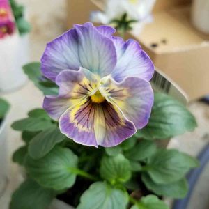 花日和さん フリル咲きパンジー 『シエルブリエ』 この子は他の子とはまた違う色目で薄い紫と黄色がすごく綺麗だったので、早速お持ち帰り決定〜。 『シエルブリエ』さんはオーロラのような神秘的な色だから、 尚更魅力を感じるんだな。