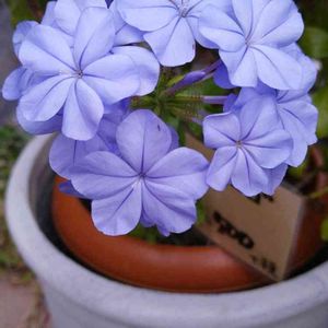 こんばんは~🌃 ルリマツリ(瑠璃茉莉)✨💜 また好きな花💓 今日は 🏷毎月8日は鉢の日☘️ お蔵入りだったのですが 見て頂けるチャンス🎵 二重の鉢に500円の🔖 安いの高いの❔