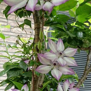 🍒サクランボの木陰で咲いてる 大輪クレマチス 揖斐 最初は白っぽいお花でほんの少し覆輪があったのに… お迎えして4年目… 白地に鮮やかな紫の覆輪が付いて美人さんに変身です(๑´ლ`๑)フフ♡ 今年はサクランボ🍒10粒位 鳥さんに食べられてました💦 来年に期待です(*ˊᵕˋ*)✨🍒