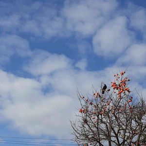 おはようございます。 届かない柿にカラスが 食べに来てます🎵