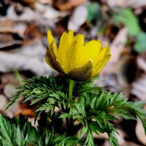 友人の⛰️ 雑木林の陽だまりで。 落ち葉🍂の間で生き生き。 この子達が好む環境、我が家ではむつかしい。 小さな葉っぱがヒョロリと出ているだけ😫