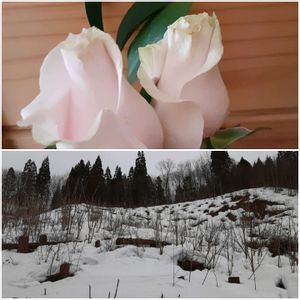 🌹バラ🌹 今日の裏山です、 まだ長靴はいてもズボッズボッ! 畑や裏山までは行けないです、 裏山の📸 スゴイ数のタラの芽やコシアブラ あります、🌱🌱🌱