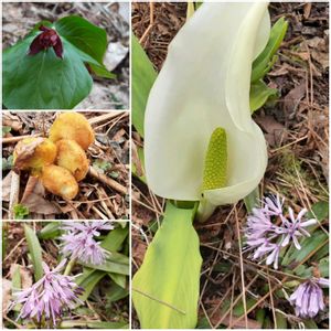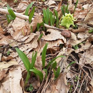 こんにちは☀️ 雪解け進んだ裏山で フキノトウゲット 今夜の天ぷら用に😊 雪の中から水芭蕉が ようやく顔出してます🌱 ショウジョウバカマの 葉っぱがワサワサです、 まん丸なバッケも🌱