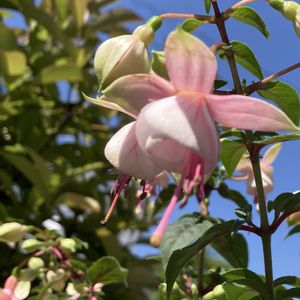 フクシア🤔? そんな名だったか? 確かホクシャとか🤔 私が小学生だった頃 父が育てていたのは 赤い蕚に紫色の花弁のだった😌 父が懐かしくなって手が伸びた😅