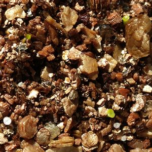 9/6に植えたリトープス種子。 どうやら発芽が始まったようです。 本当に小さな芽。 でもよく見るとちゃんと2つに割れてるようにも見える。