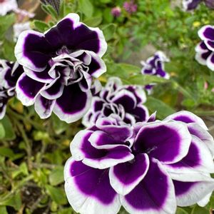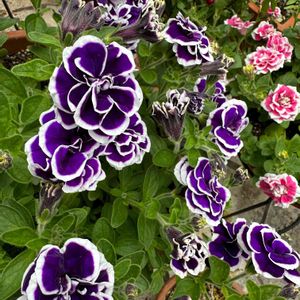 八重咲きペチュニア 今年は白にピンクが入った可愛系と シックな花衣 藍染 どちらも思いっきりピンチしたので お花はこれから😅 若干早くお迎えした藍染はだいぶ 咲いてきました💜🤍 今日も朝から暑いです😲 水分補給をお忘れなく🥤 と、自分にも言い聞かせてます😅 🏷花咲く乙女たち♡