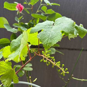 ホームセンターで1年前から放置されている鉢植え🍇 購入してしまいました😅半額で植木鉢も紫外線で日焼けてるのに実が付いてるじゃないですか! うちにあるスチューベンは今年も実が付いてないのに…。 上手に育てられず枯らす事の多い私でも大丈夫かなぁ。 品種を調べたけど、詳しい情報がないのでどんな味覚なんでしょうね〜。